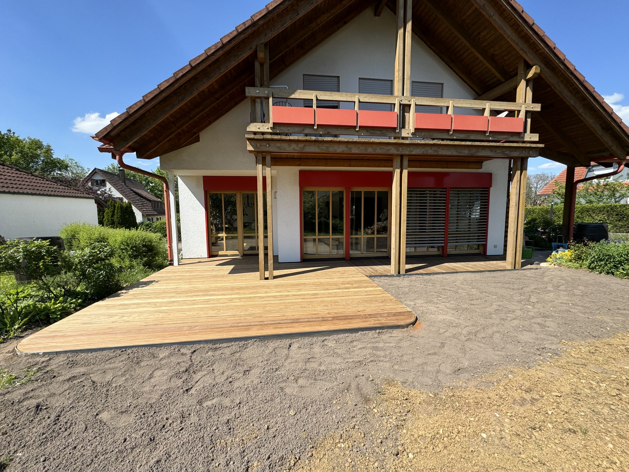 WPC Terrasse mit fahrbarer Poolabdeckung